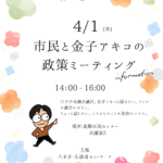 2026年3月31日 / 最終更新日 : 2026年3月31日 hachiouji トピックス 2026年度予算要望 八王子市の回答 2025年に皆さまから寄せられたひとこと提案を盛り込んだ、「2026年度予算要望書」に対する八王子市からの回答をお知らせします。 下の画像をクリックするとご覧いただけます。 引き続き、2027年度の予算要望に向けて、皆さ […]